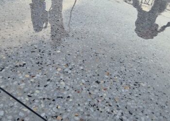 Terrazzo paving of roof terrace
